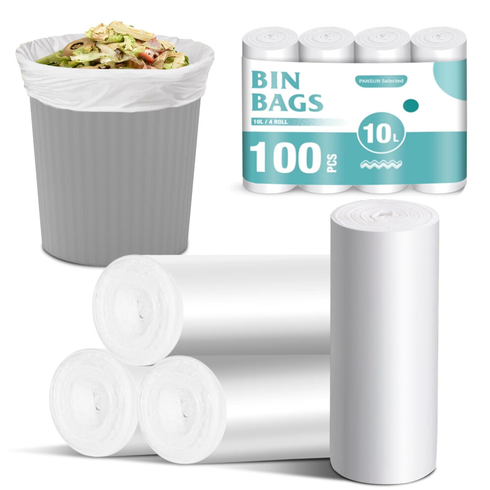 PANSUN Selected 100 Counts Small Bin Bags, 10L Pedal Trash Can Bin Liners for Bathroom,kitchen,Unscented White Garbage Bags