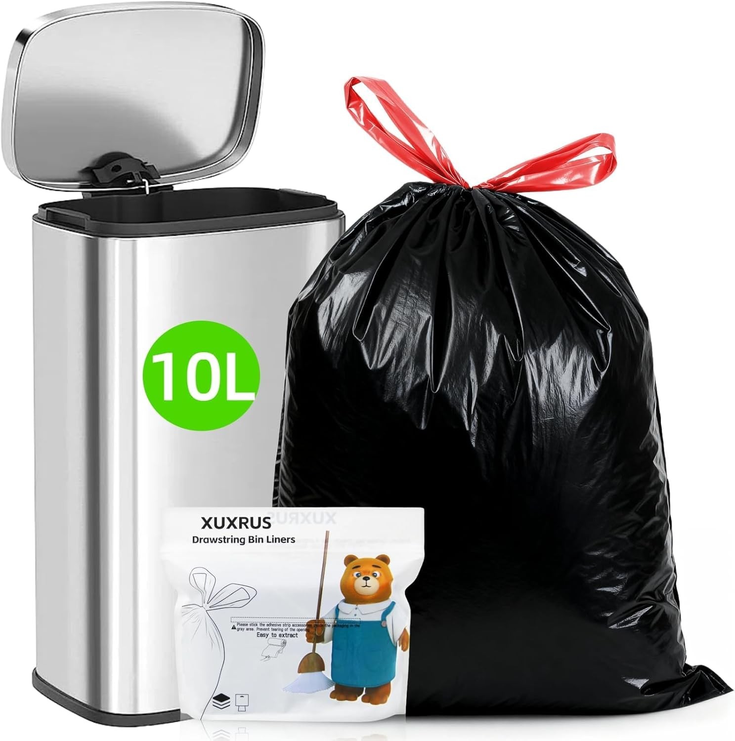XUXRUS 10L Bin Bags Pedal Bin Liners 60 Bags Small Drawstring Tear-Resistant Bl