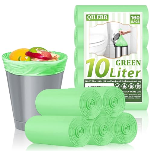 QILERR Bin Bags 10L Small Bin Liners 160 Count Food Waste Bags Thickening Pedal Waste Bags Green Caddy Liner for Kitchen, Bathroom, Toilet, Fit 10 to 12L Pedal/Swing Bin