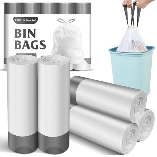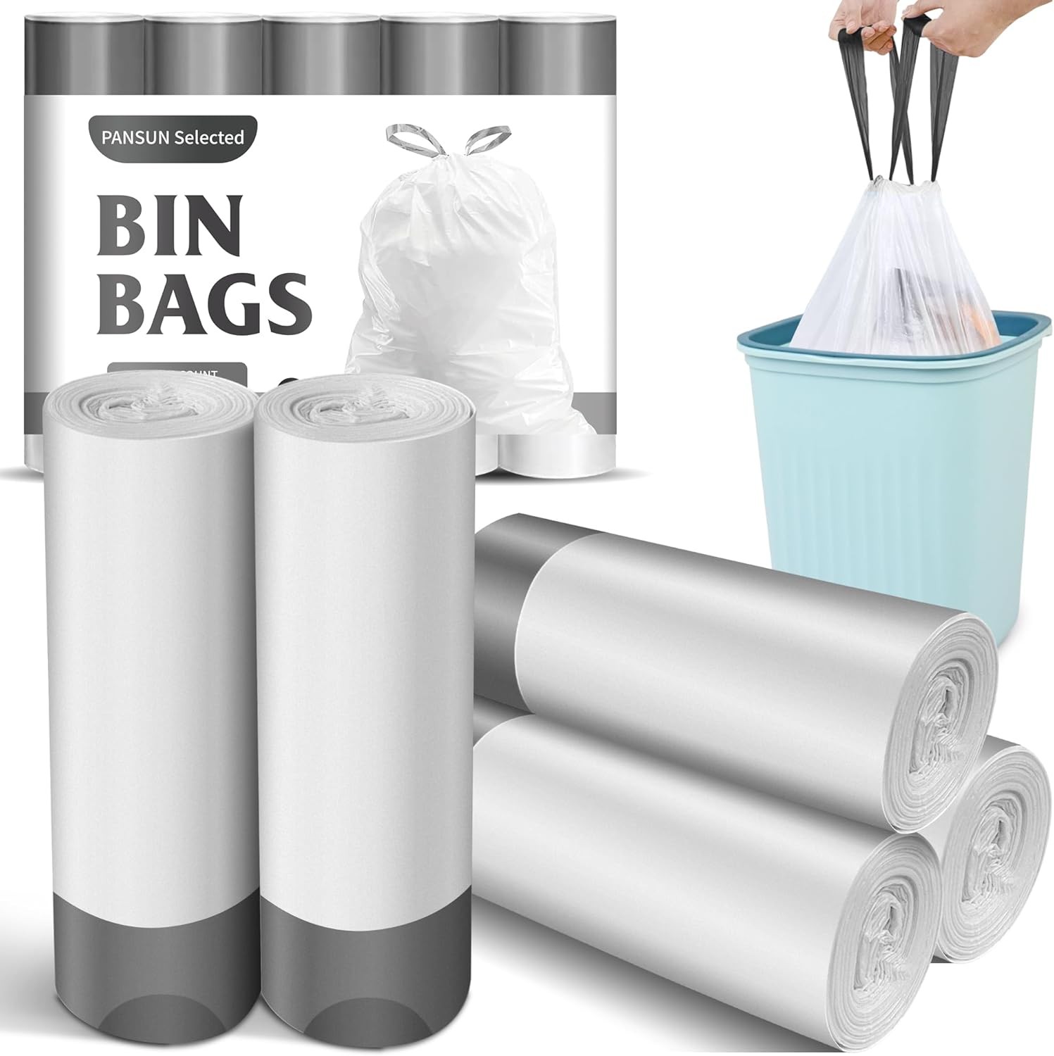 PANSUN Selected Bin Bags 10L Drawstring Small Heavy Bin Liners for Bathroom Pedal Bin Liners, Office Waste Paper Bin, Bedroom, 60 Count, Fit 5L-10L Garbage Bin
