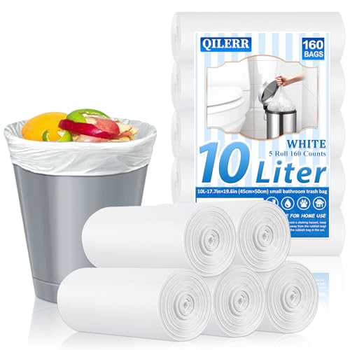 QILERR Small Bin Bags 10L Bathroom Bin Liners 160 Counts White Thickening Unscented Pedal Trash Can Liners for Bedroom, Toilet, Kitchen
