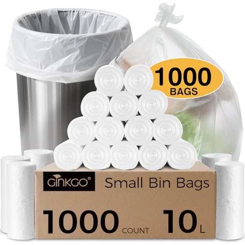 1000 Count Small Bin Bags, 10L Pedal Bin Liners Bulk Pack, Clear Garbage Bags, White Wastebasket Liners, Plastic Trash Bags for Bathroom, Office - Unscented