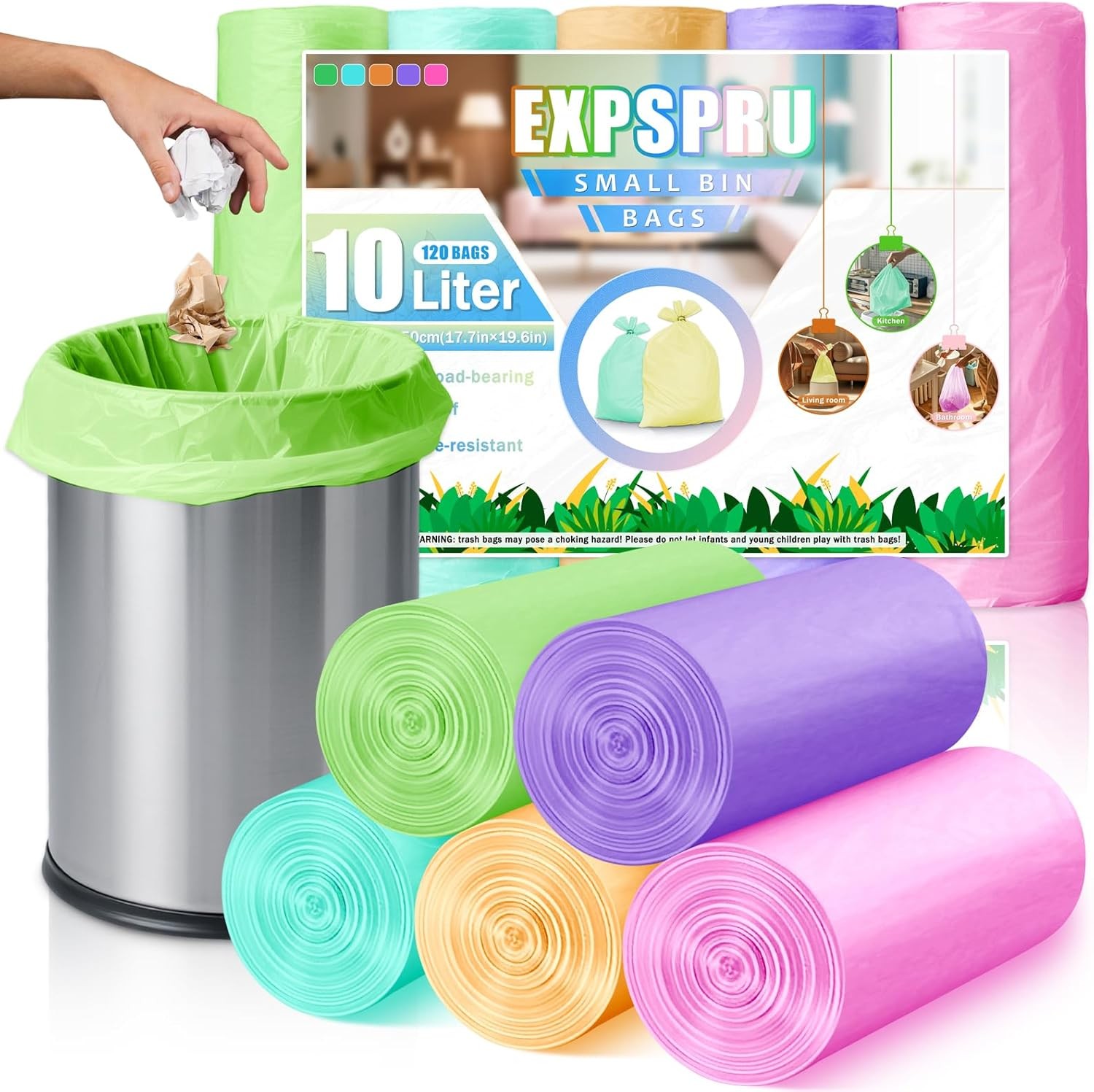 10L Bin Bags Small Garbage Bags Bathroom Pedal Bin liners Wastebasket Bins bags for Kitchen,Office,Colorful,120 Count