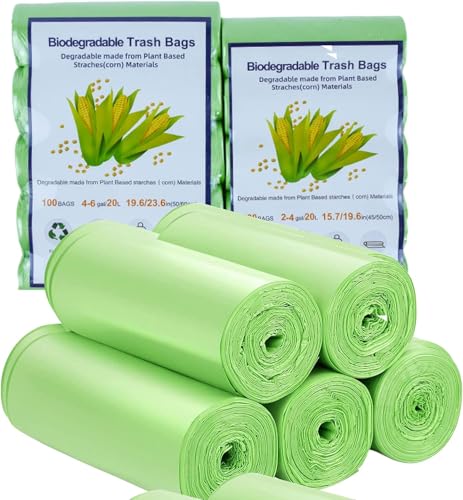 Biodegradable Bin Bags Liners 120PCS, 10L Small Food Waste Trash Bags with Handle, KITBEST Green Caddy Liner Pedal, Compostable Swing Garbage Bag Bathroom Office Toilet Kitchen (45x59cm)