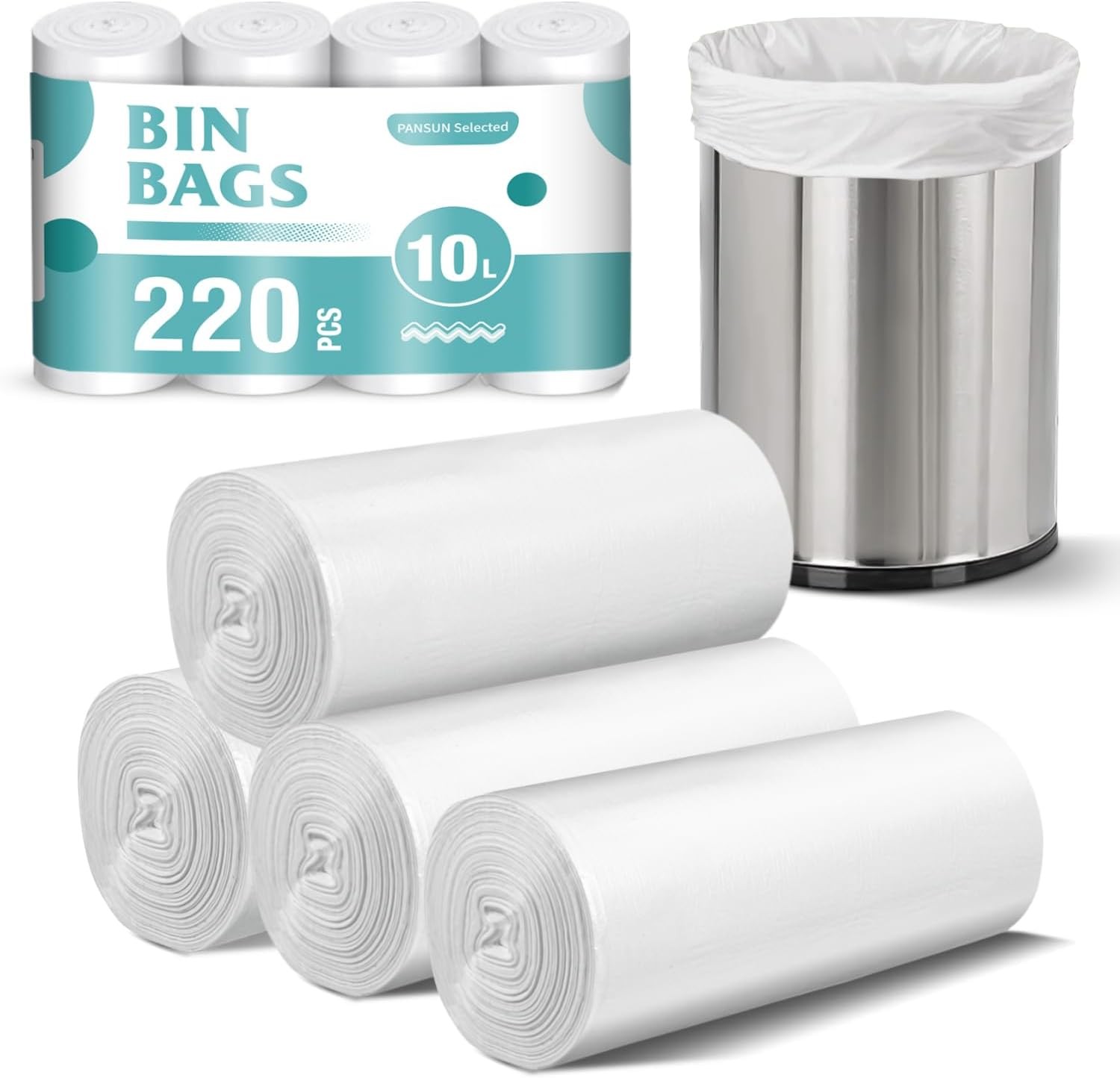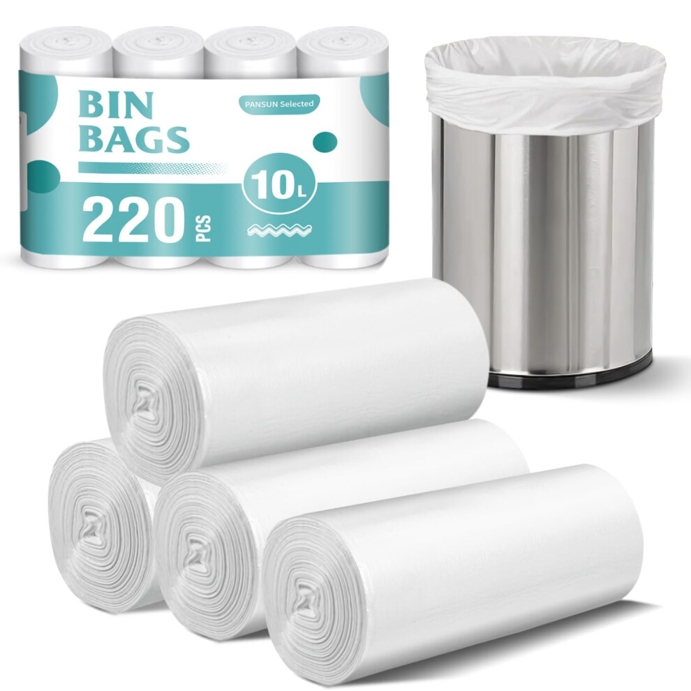 PANSUN Selected 220 Counts Small Bin Bags, 10L Pedal Trash Can Bin Liners for Bathroom,kitchen,Unscented White Garbage Bags
