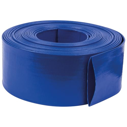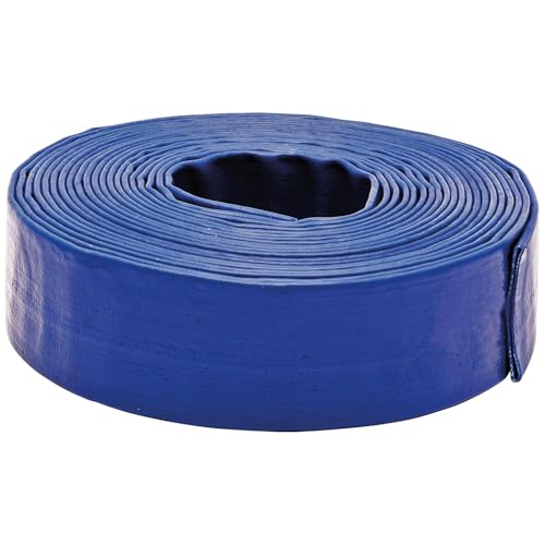 Fordle’s 10m x 25mm Diameter Layflat Discharge Hose Pipe Compatible with Submersible Water Pump – Blue PVC Reinforced with Polyester– Includes 2 Clips