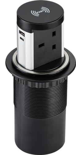 Knightsbridge 13A Pop up Socket with 10W Wireless Charger and Dual USB A+C (12V DC 1.5A) Max. 30W