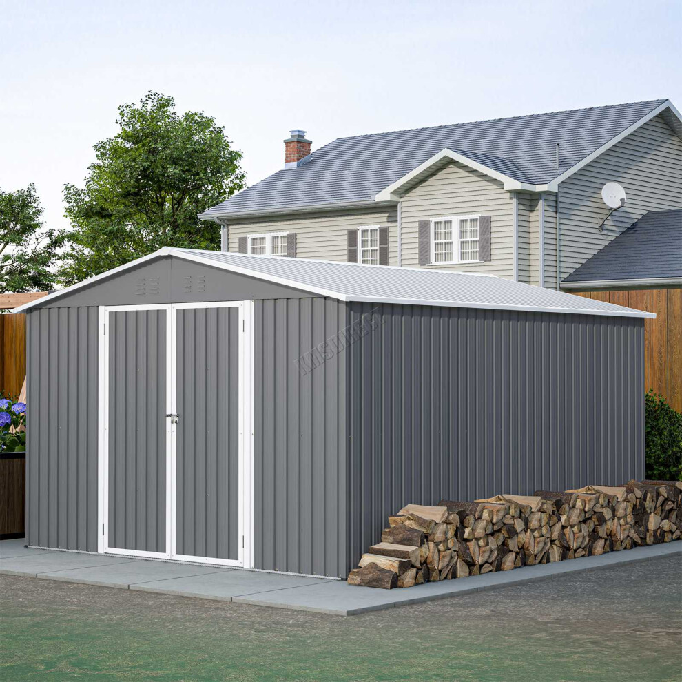 10 x 12 ft Grey Apex Metal Shed Garden Storage Shed with Lockable Door