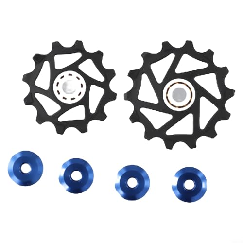 babominimer 2pcs 12T+14T Ceramic Bearing Rear Derailleur Pulley Wheel Set Compatible with AXS, Resin Narrow Wide Guide Wheels for 9/10/11 Speed Chains,(Blue)