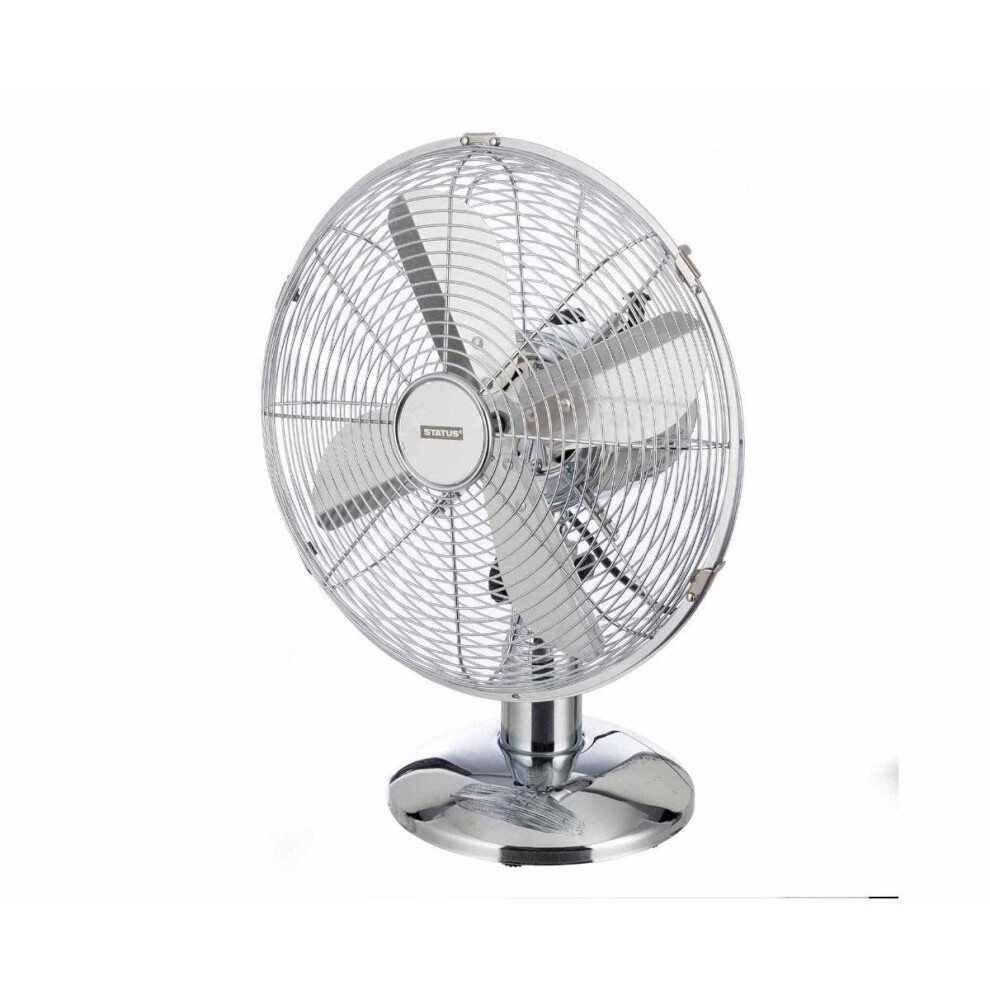 Status Desk Fan | 12 Inch Oscillating Portable Fan | 3 Speed Adjustable Angle Fan | Chrome | S12CDESKFAN1PKB