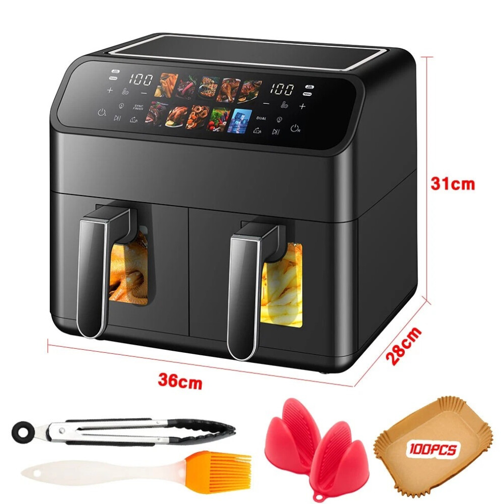 12L Dual Zone Air Fryer Oven 2300W Digital Double Basket Oil Free Cooker Large Capacity Touch Control 8 Presets Kitchen Appliance
