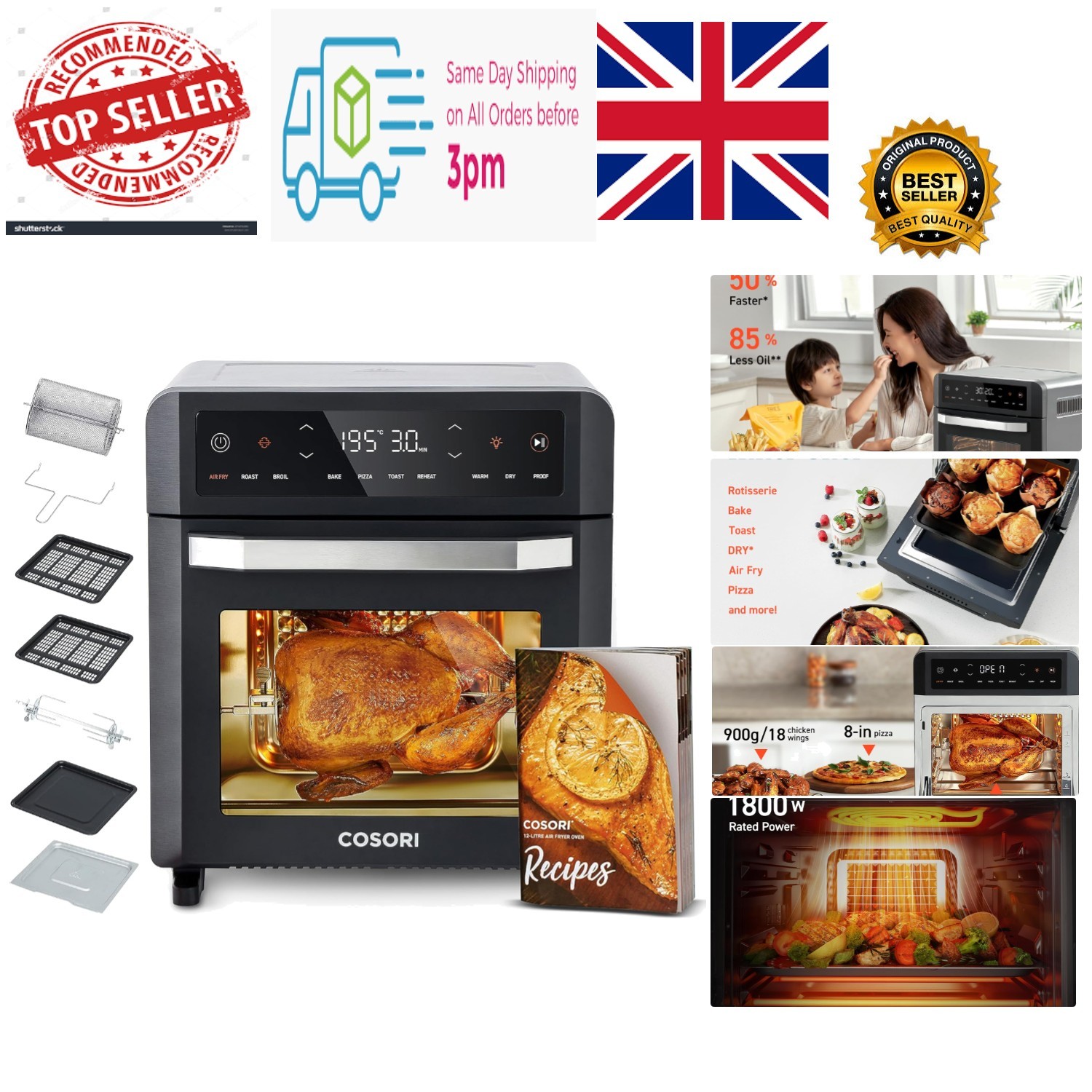 12L Air fryer Family Size Digital Oven With Accessories 8 Cooking Presets 1800W