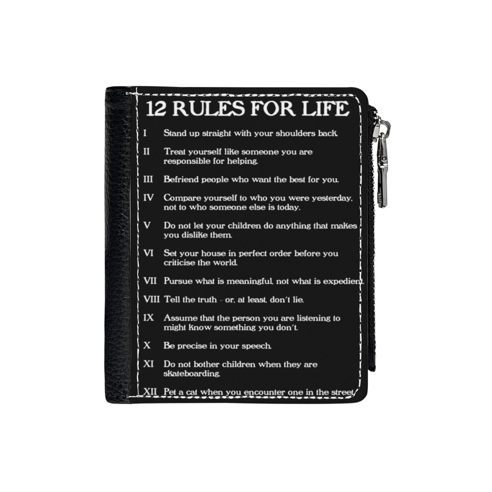 (12 Rules For Life - Jordan Peterson_55) PU Wallet Compact Bifold with Zipper & Multiple Card Coins Slots Black Stylish Durable Graphic Design Print f