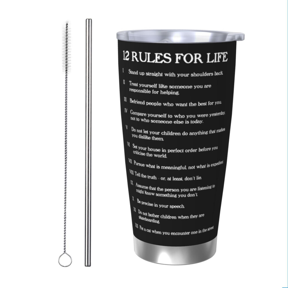(12 Rules For Life - Jordan Peterson_110) Stainless Steel Tumbler 20oz Insulated Coffee Travel Funny Birthday Christmas Gifts for Women Men Boss Cowor