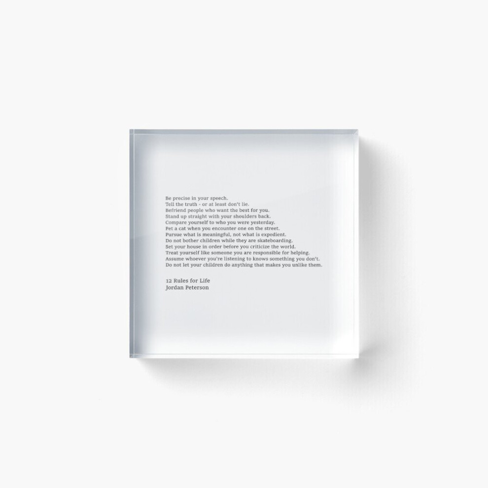 Acrylic Block Jordan Peterson 12 Rules for Life Cube Art Prints Gifts 6 x 6 inch
