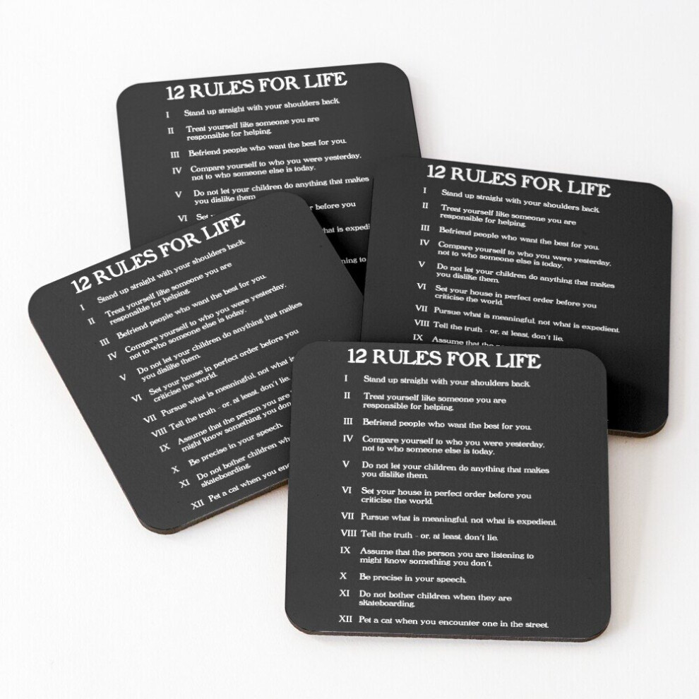 Leather Coasters 12 rules for life - Jordan Peterson Set of 4 / 4 x 4 inch