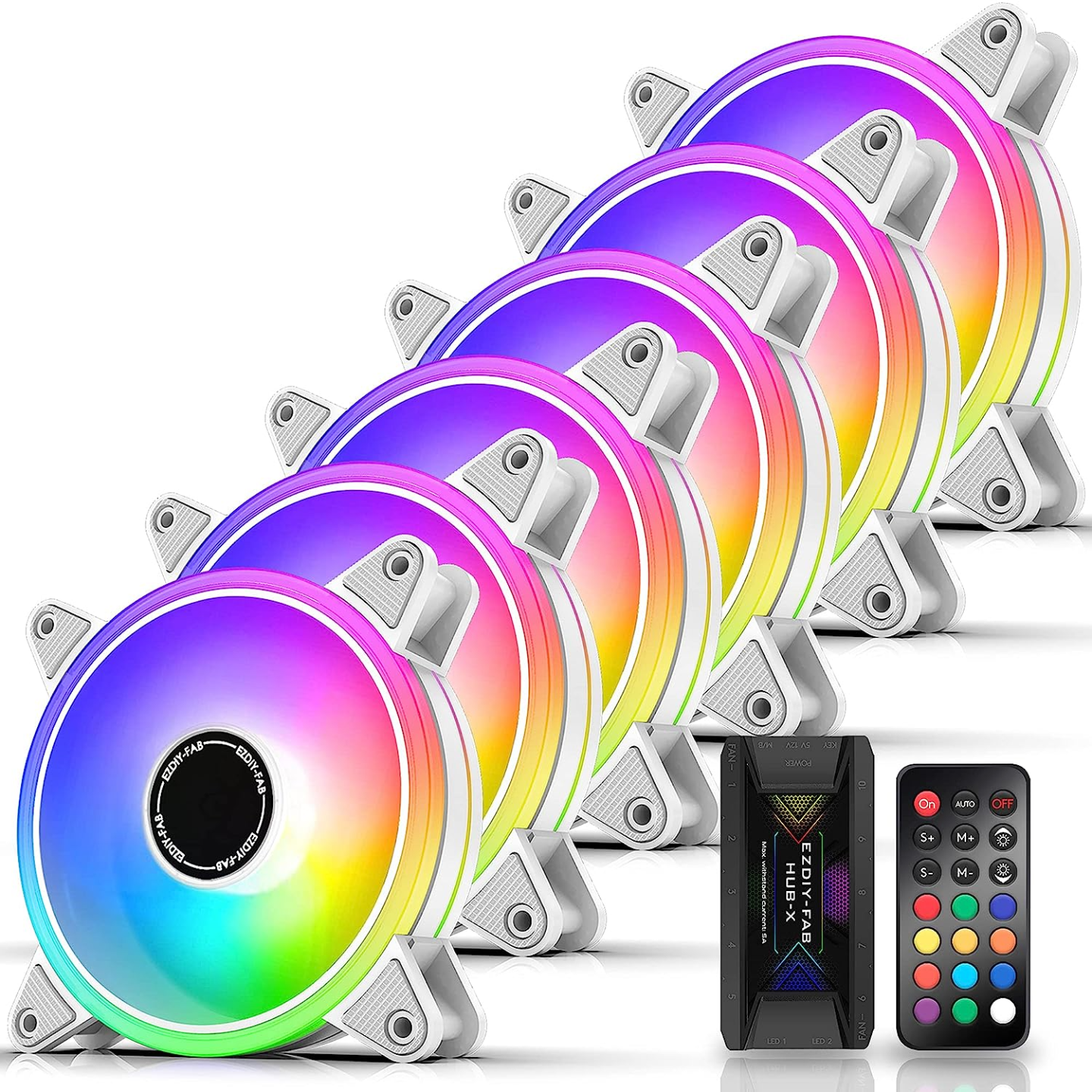 QPSJXN 120mm RGB Computer Fan Silent Cooling FDB Bearing Compatible with Chassis And CPU(White 3pcs)