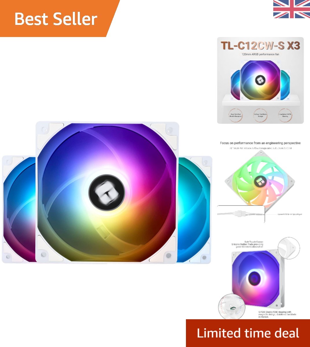 Upgrade Your PC Cooling: TL-C12CW-S X3 120mm ARGB RGB Fan with Silent PWM Tec...