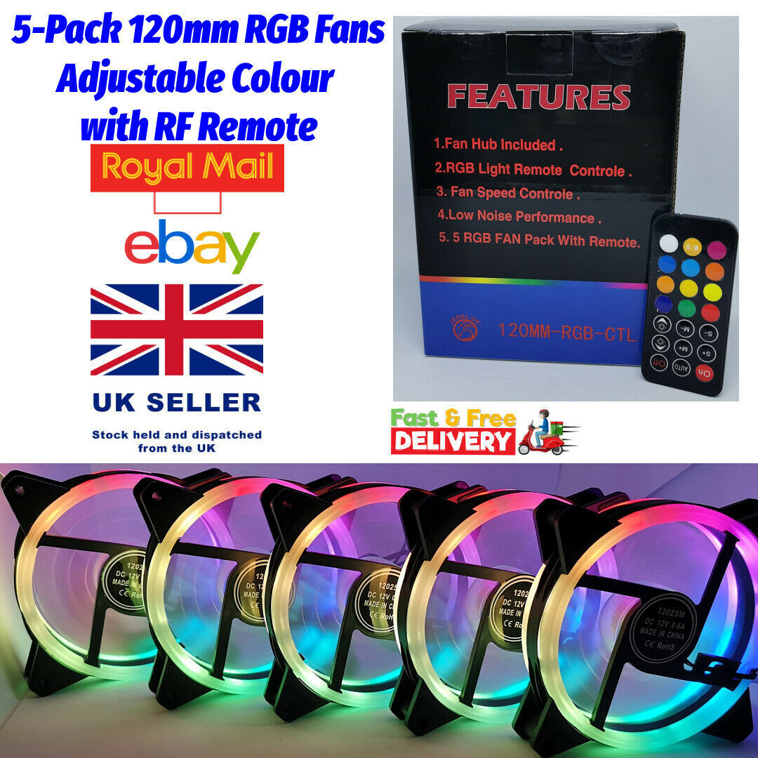 QPSJXN 120mm RGB Computer Fan Silent Cooling FDB Bearing Compatible with Chassis And CPU(Black 3pcs)