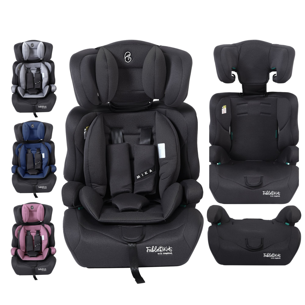 FableKids Child Car Seat | 5-Point Safety Harness | Group 1+2+3 for 9-36kg | Adjustable Headrest |Removable Backrest | Adjustable | Black