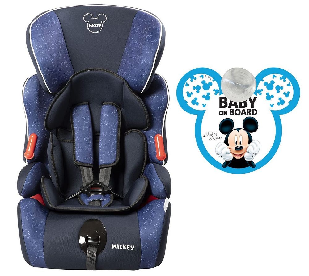 Disney Mickey Mouse Car Seat Group 1/2/3 (9-36 Kg), Blue Mickey with Cart