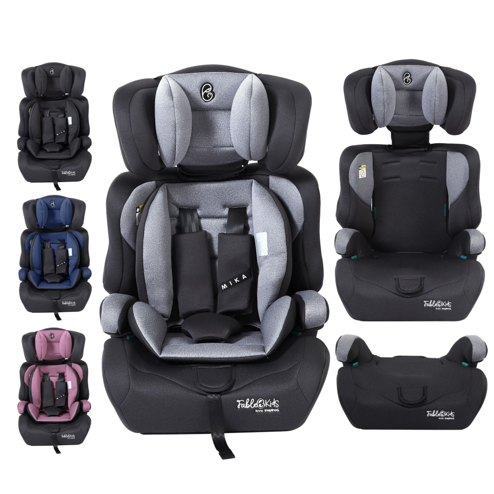 FableKids Child Car Seat | 5-Point Safety Harness | Group 1+2+3 for 9-36kg | Adjustable Headrest |Removable Backrest | Adjustable | Grey