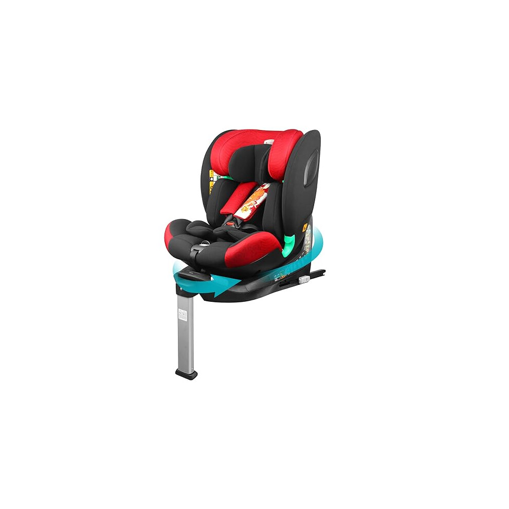 globalkids i-Size 360 Swivel Car Seat, Group 0+123 Car Seat with ISOFIX and Support Leg, ECE R129, 0-36 kg, 0-12years, 40cm-150cm, Red