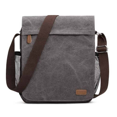 S-ZONE Medium Messenger Bag with 12.9 Inch Tablet Compartment Men Canvas Crossbody Satchel Shoulder Bag