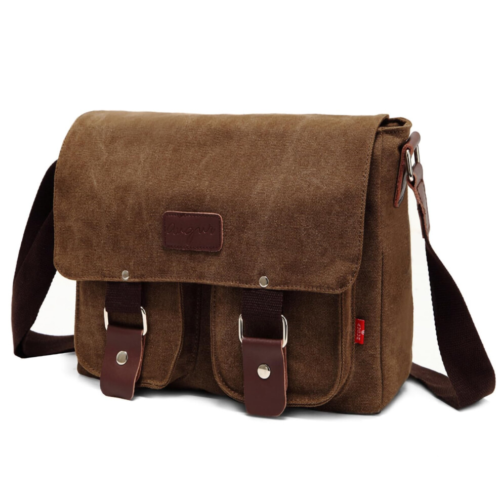 Retro Shoulder Bag for Men - Canvas Messenger Bag for 12.9 Inch Tablet, Travel Work Briefcase, Coffee, Large Size