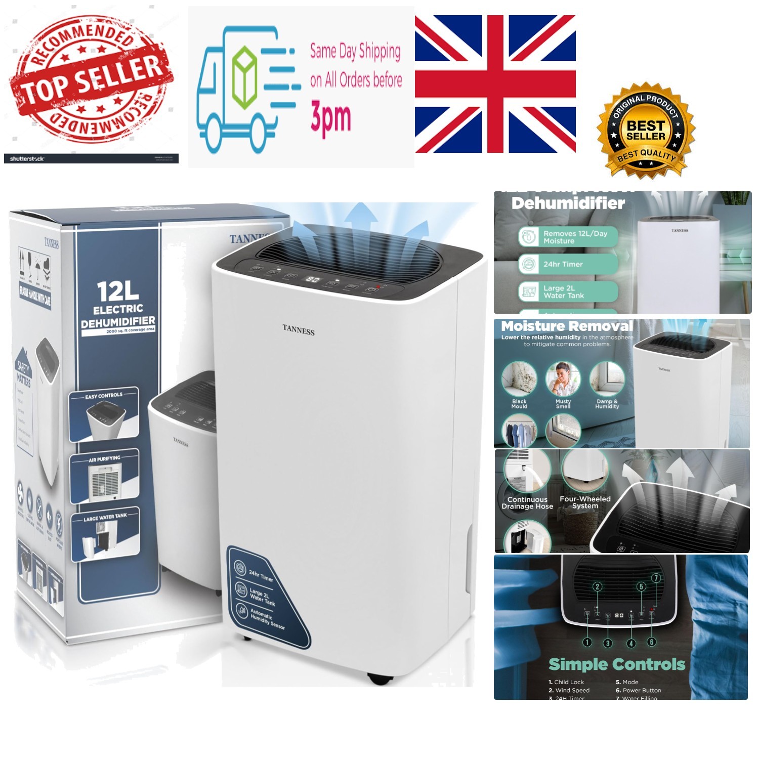12L Dehumidifier With Digital Humidity Display Sleep Mode Laundry UK