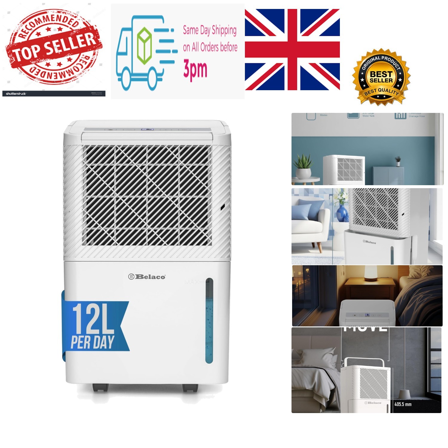 Belaco 12L Compressor Dehumidifier for Home, Portable Moisture Remover for Damp & Condensation, Digital Humidity Display, 24-Hour Timer, Compact Dehu