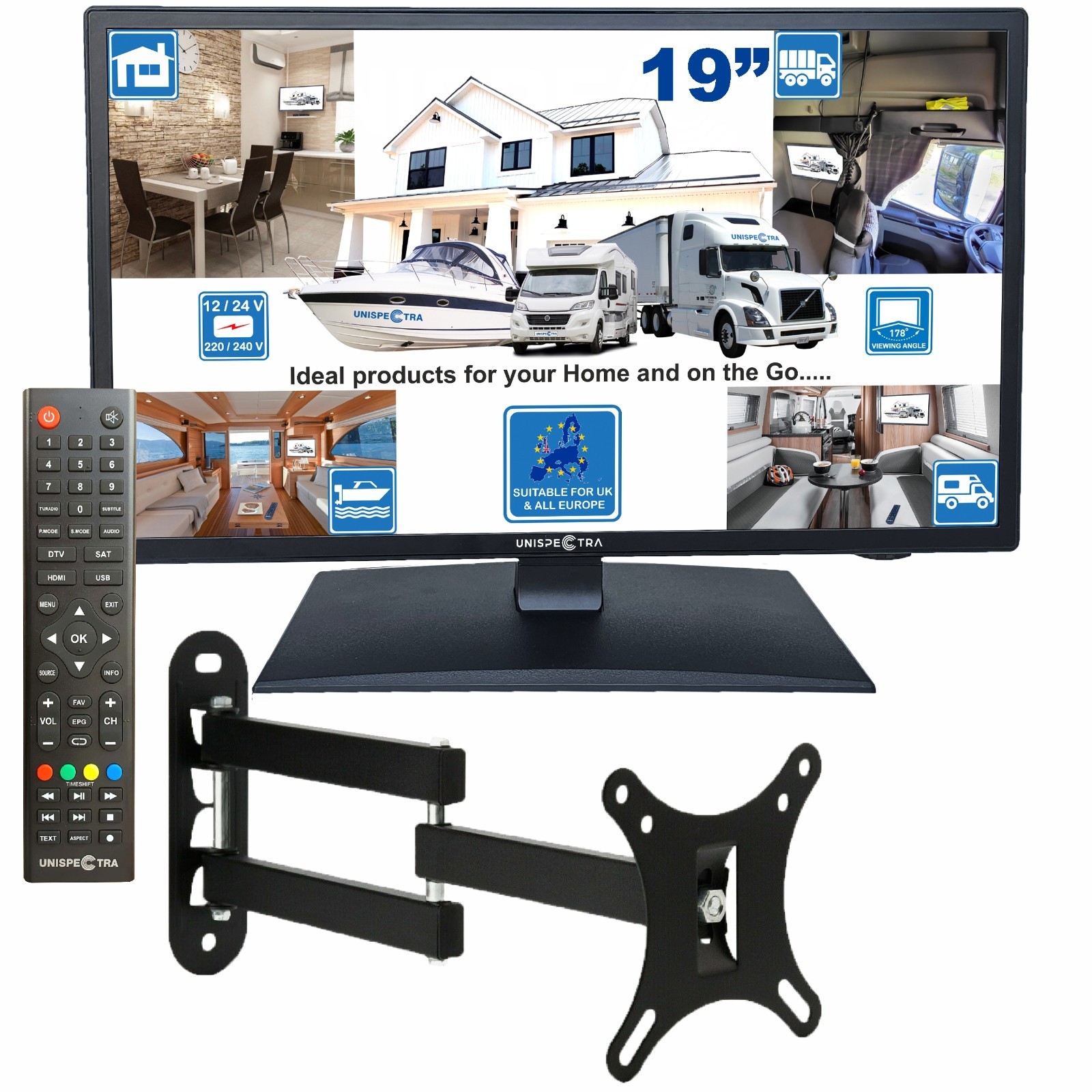 Unispectra® 19" TV + Wall Bracket 12V / 240V MOTORHOME CARAVAN BOAT TRUCK VAN