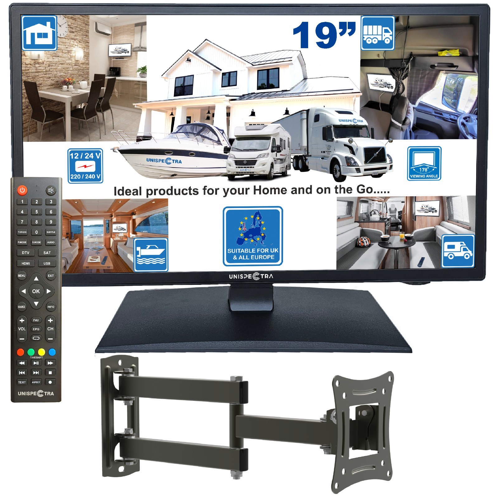 19" TV + Wall Bracket 12V / 240V HD LED MOTORHOME CARAVAN BOAT TRUCK VAN