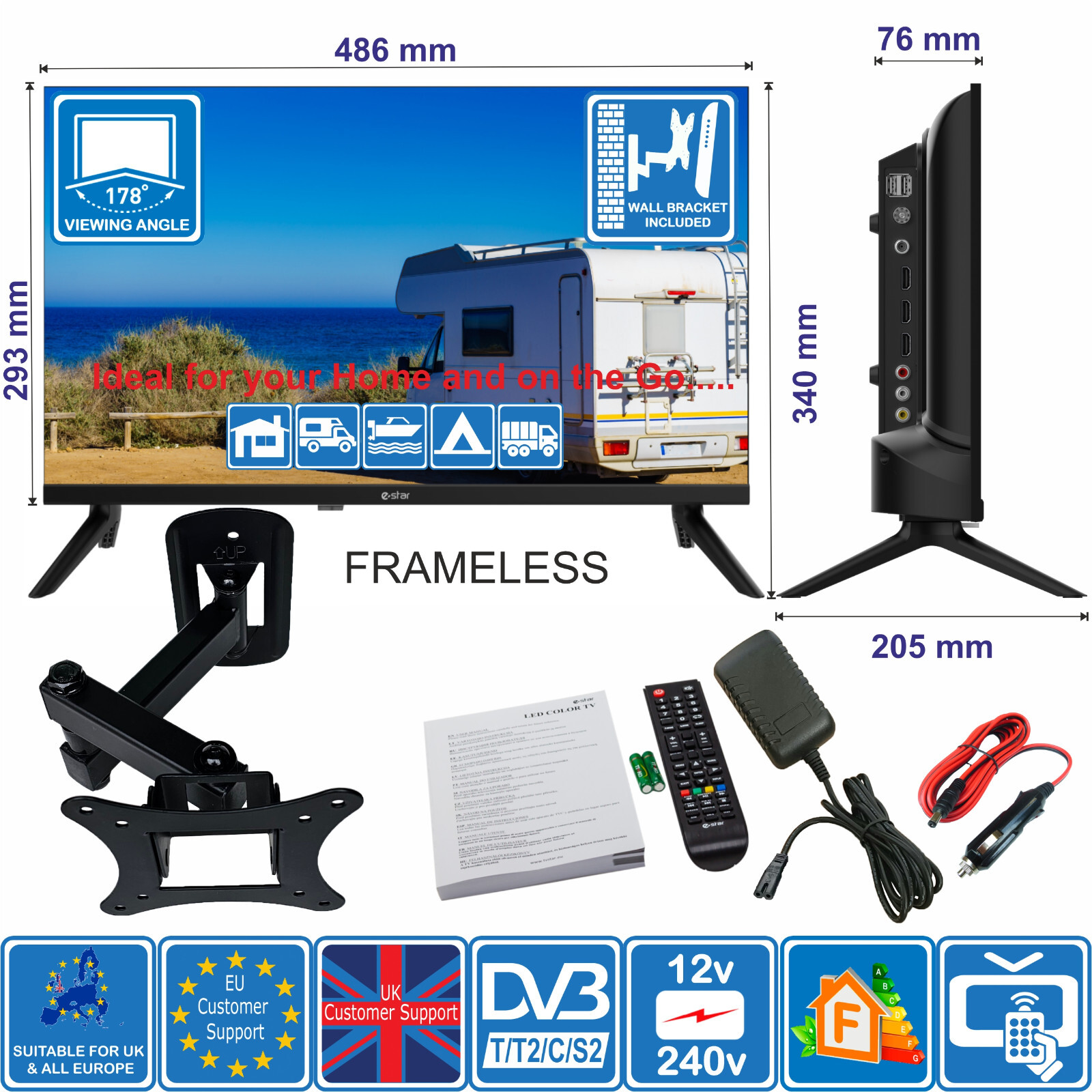 eStar 22" TV + Wall Bracket 12V / 240V Full HD TV for MOTORHOME CARAVAN BOAT VAN