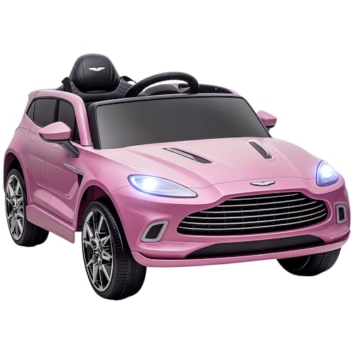 AIYAPLAY 12V Kids Electric Car, Aston Martin DBX Licensed Kids Ride on Car with Remote Control, 4 Suspension Wheels, LED Lights, Music, Horn, Slow Start, for Ages 3-6 Years, Pink