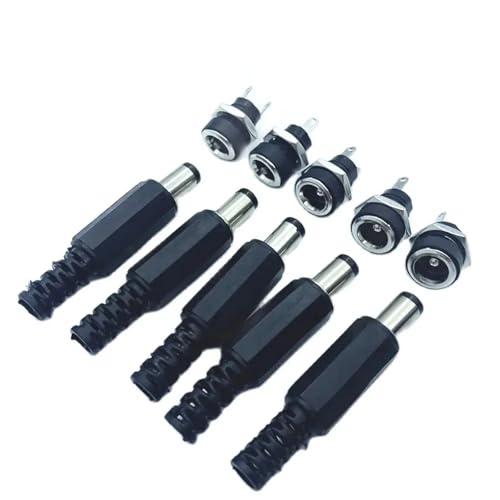 ZLGYGLEO 5Pair 5.5x2.1/2.5mm DC Power Connector 3A 12V 9mm DC Male +DC022B Female Jack Charging Socket Screw Nut Panel Mount Adapter(5Pair 2.5MM)