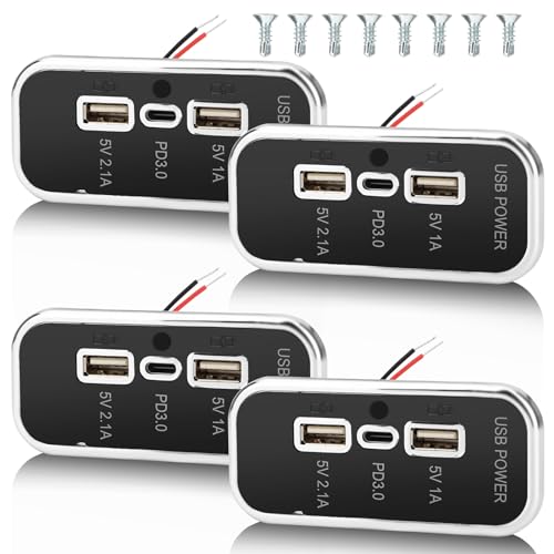 Gibbab 3 Ports 12V RV USB Outlet 45.5W, 4PCS PD3.0 Type-C Quick Charge & Dual USB-A Port 3.1A Panel Wall Mount, Automotive Car Socket Charger Adapter for RV Marine Boat Bus ATV Motorcycle Truck