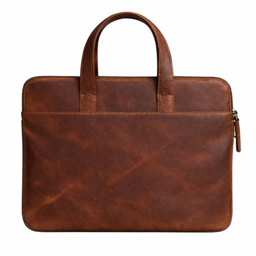 Leather Laptop Bag for 14-inch MacBook Pro M1-M5 Handmade Full-Grain Leather Sleeve with Handles Slim Protective Carry Case (Oil-pullup Brown)