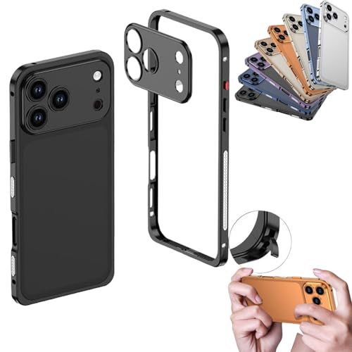 ZXDZSW Ultra-Thin Metal Frame Heat Dissipation Case with Lens Protector, DIY Color-Block Fashion Phone Case for iPhone 17/16/15/14 Plus Air Pro Max(Titanium,For 14 promax)