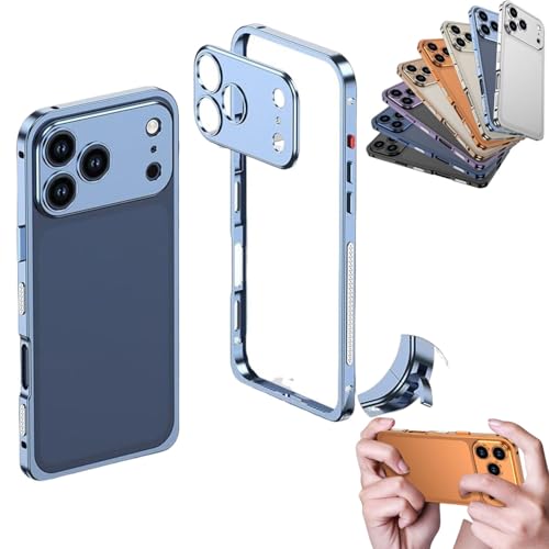 ZXDZSW Ultra-Thin Metal Frame Heat Dissipation Case with Lens Protector, DIY Color-Block Fashion Phone Case for iPhone 17/16/15/14 Plus Air Pro Max(Blue,For 14 promax)