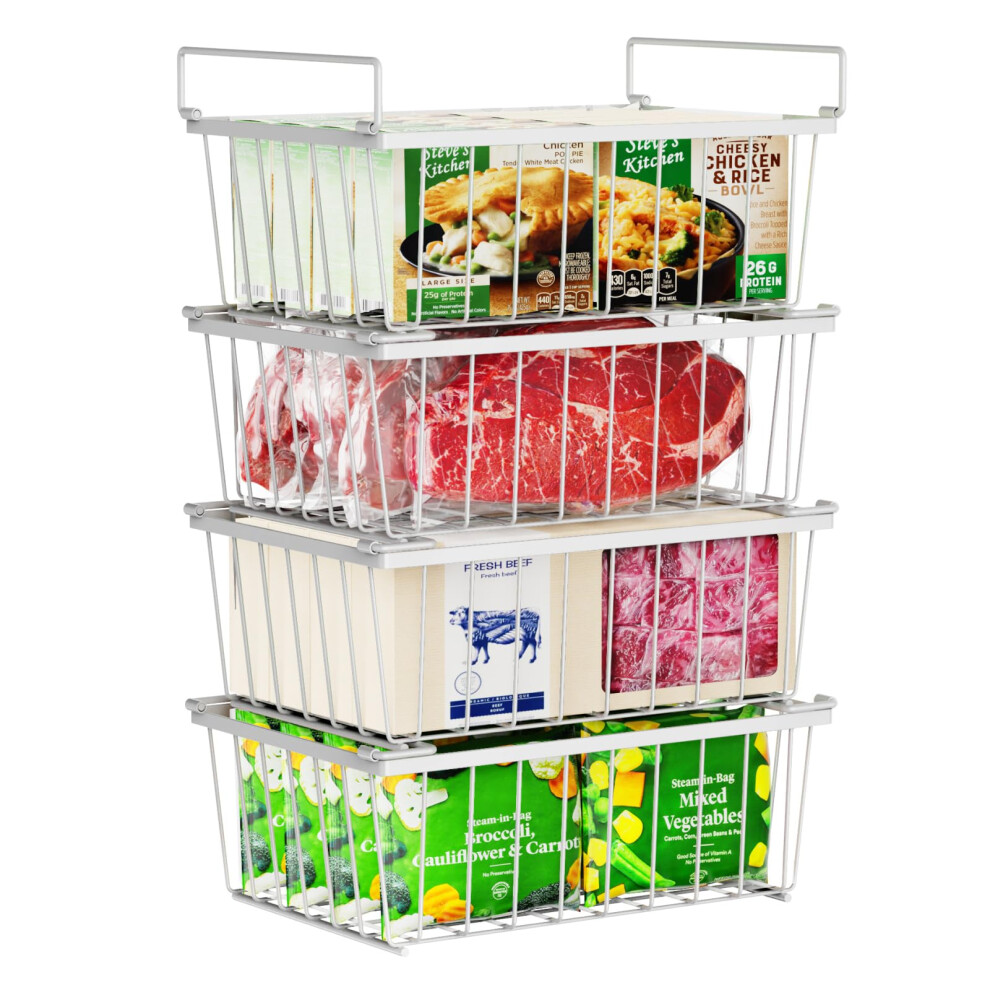 Chest Freezer Organiser - 4 Pack for 198 Litre Deep Freezer, Stackable Wire Ches