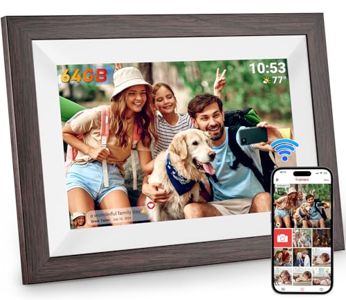 Frameo 10.6 Inch Smart WiFi Digital Photo Frame with Touch Screen 100% sRGB IPS Display, Auto-Rotate. Get Photos Instantly via App from Anywhere, 64GB Storage, Support SD Card/USB.