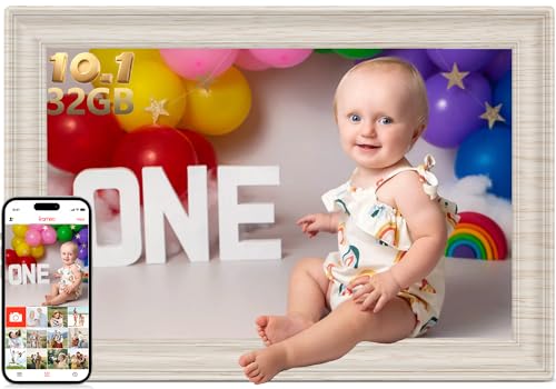 Frameo 10.1" WiFi Digital Photo Frame,Built in 32GB Memory, IPS HD Touch Screen Electronic Photo Frame, Auto-Rotate & Wall Mountable, Share Photos/Video Remotely Anywhere (White Birch Wood)