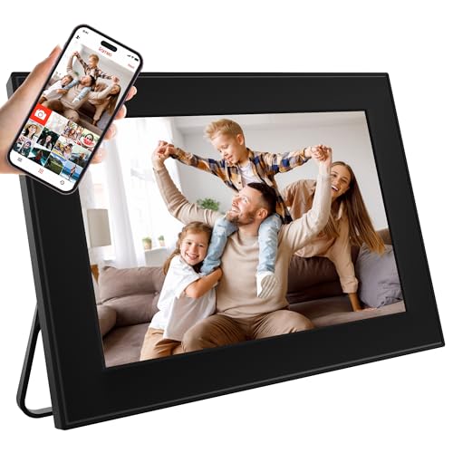 Hesmor Frameo Digital Photo Frame WiFi, 10.1 Inch Digital Picture Frame 1280x800 IPS Touchscreen Auto-Rotat Electronic Photo Frame Share Photos Videos Anywhere, 32GB, Black & White