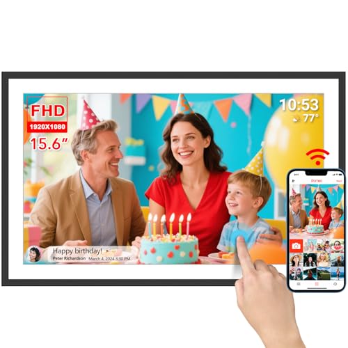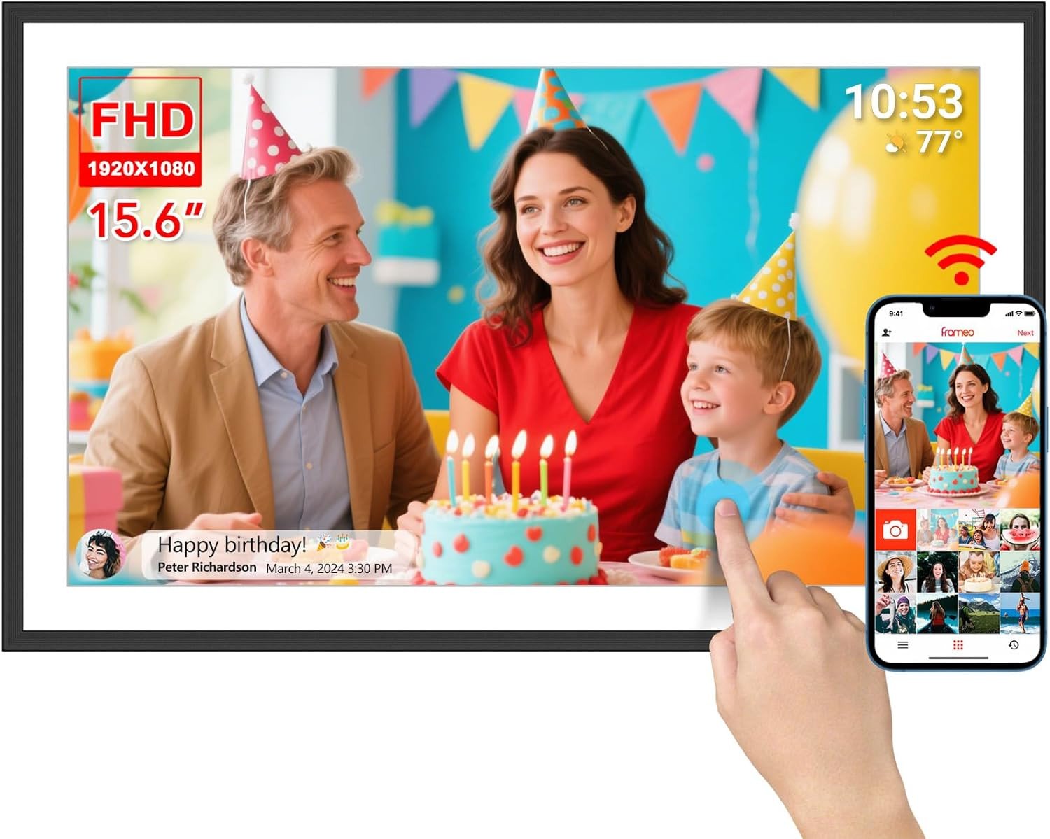15.6" WiFi Digital Photo Frame, Frameo App, FHD IPS, 32GB Auto Rotate