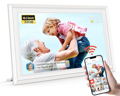 Frameo 10.1 Inch Smart WiFi Digital Photo Frame,Digital Picture Frame Wi-Fi with 32GB Storage & SD Slot, Electronic Picture Frame IPS Touch Screen with Auto-Rotate, Frameo Digital Frame WiFi -White