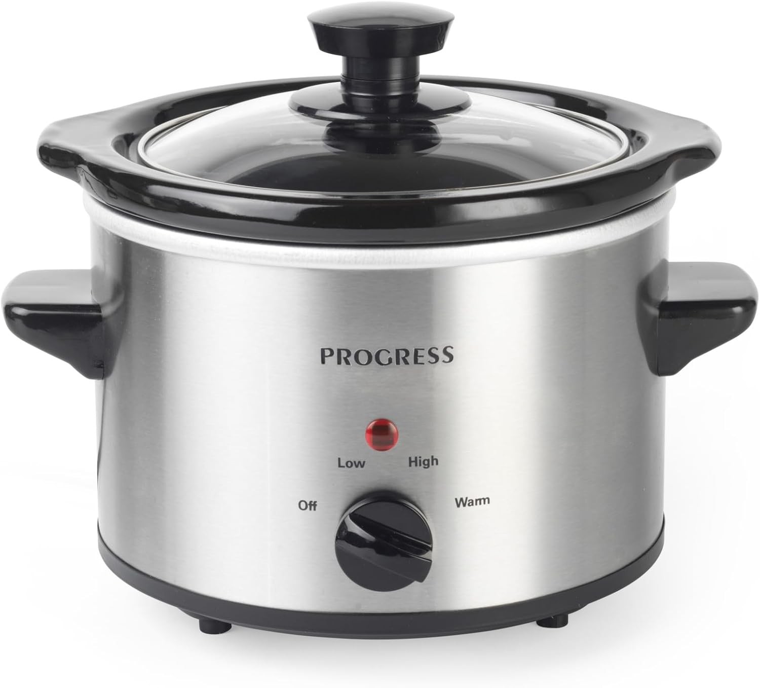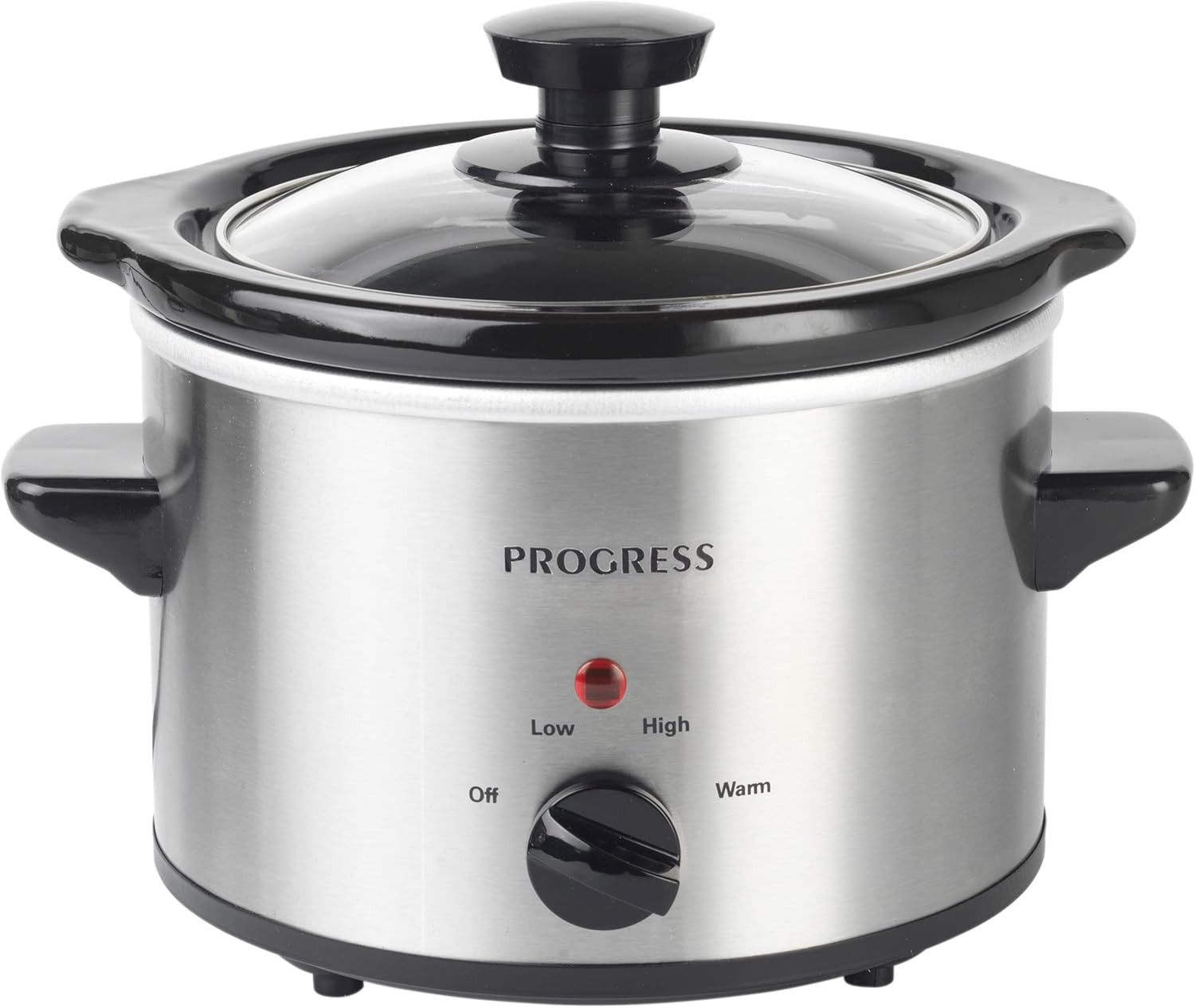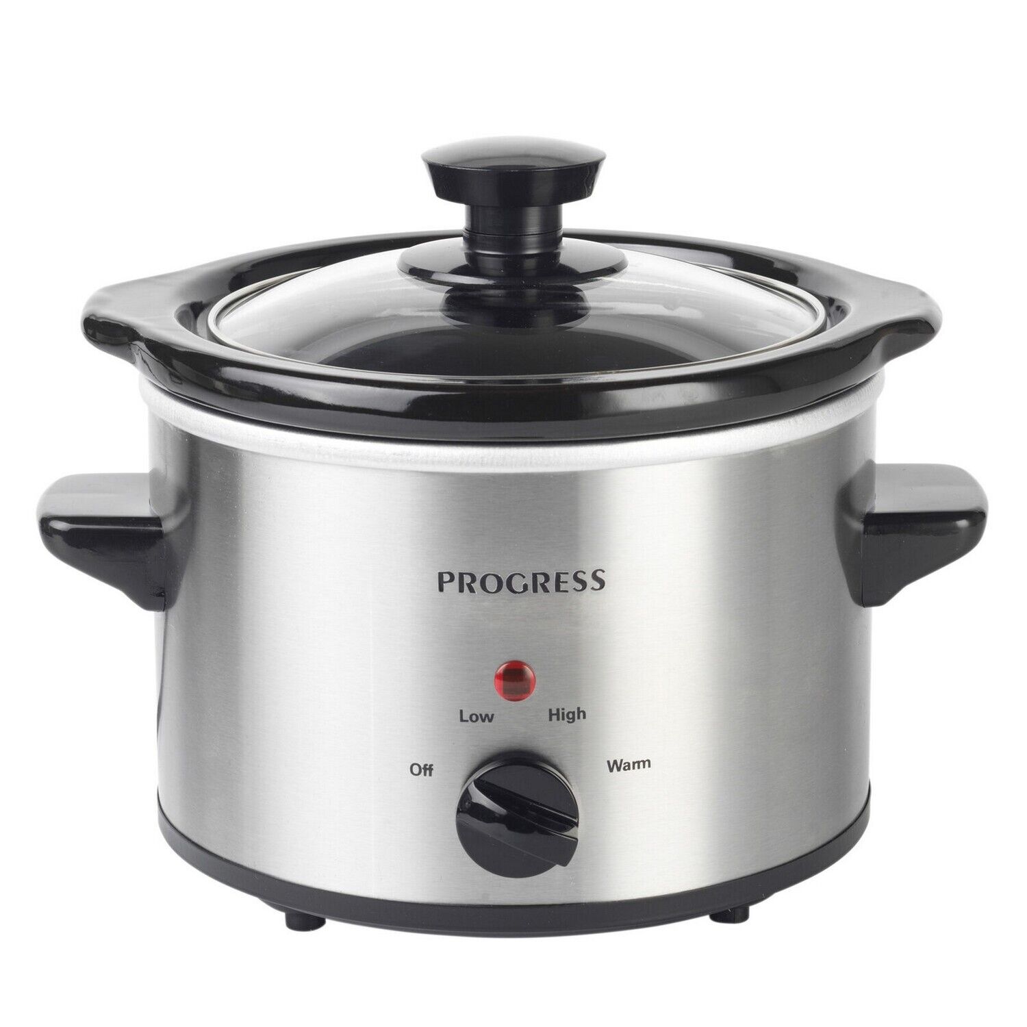 Progress 1.5L Slow Cooker Stainless Steel Slow Cook Removable Ceramic Curry Pot