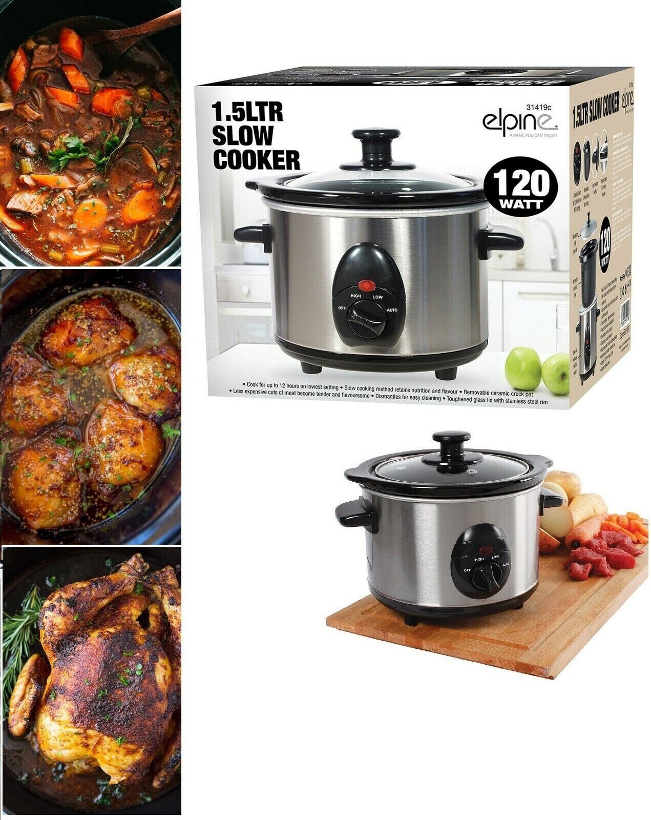 35269 1.5 Litre Slow Cooker/Compact Stainless Steel / 3 Temperature Settings/Tra