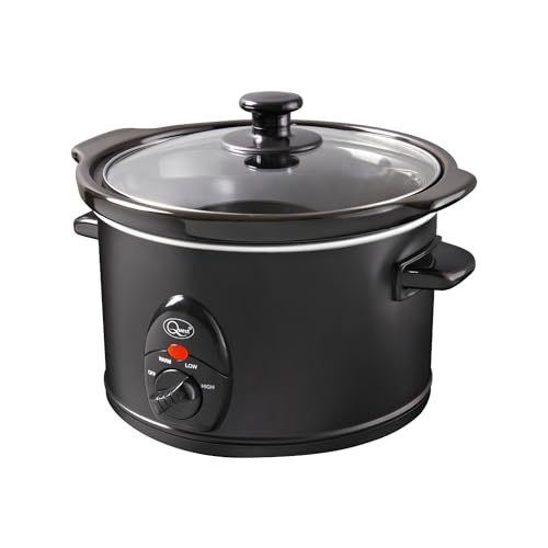 Quest 35269 1.5 Litre Slow Cooker/Compact Stainless Steel / 3 Temperature Settings/Transparent Toughened Glass Lid/Dishwasher Safe Bowl/Black Colour / 120W