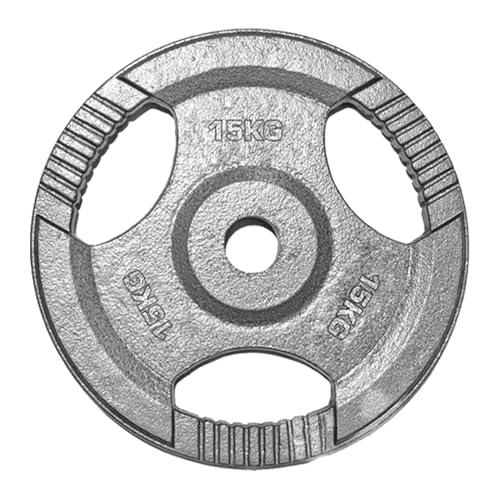 TNP Accessories 2-Inch Olympic Cast Iron Weight Plate | Heavy-Duty Silver Tri-Grip for Barbells & Dumbbells | Home & Commercial Gym Strength Training (1 x 15kg)